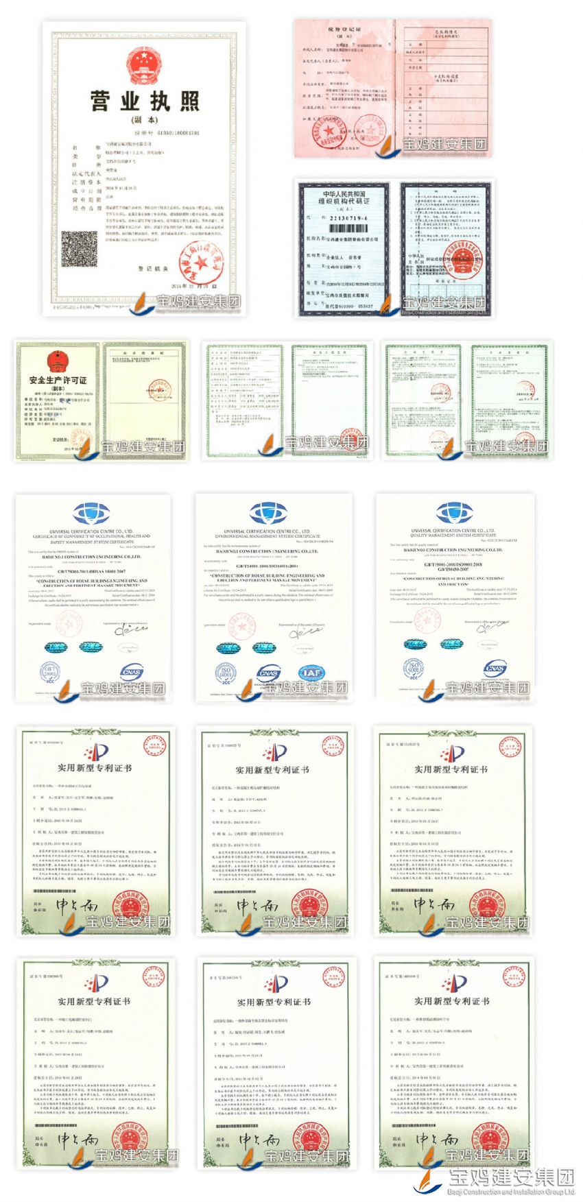 Qualification:the company has qualifications of first-level general contracting of housing construction, second-level general contracting of municipal public engineering and mechanical & electrical installation engineering, professional first-level general contracting of steel structure work, fire-fighting facilities engineering, lifting equipment installation work and building decoration engineering, as well as professional second-level contracting of ancient garden construction engineering and building curtain wall engineering. |