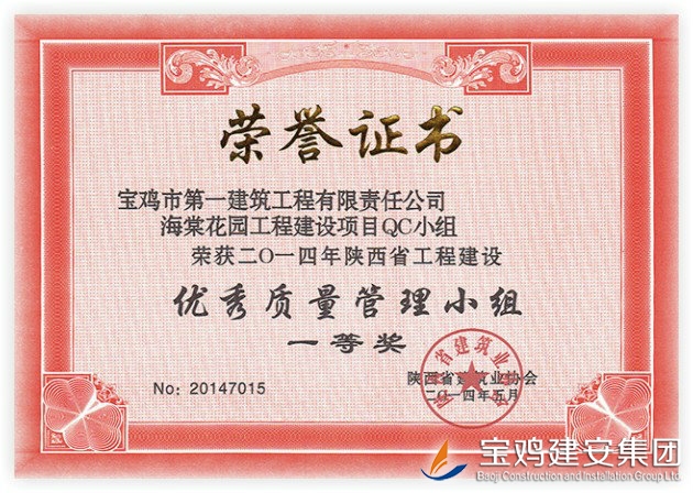 QC Team Award of Begonia Garden Construction Project