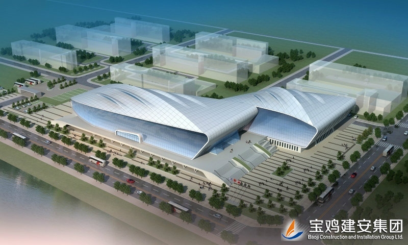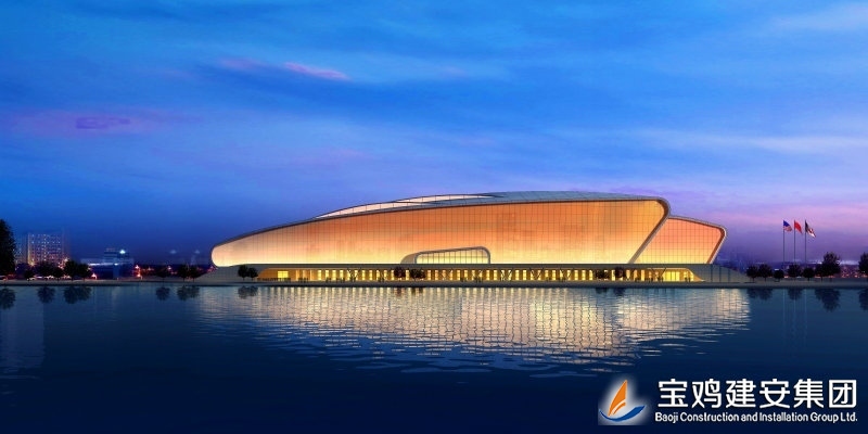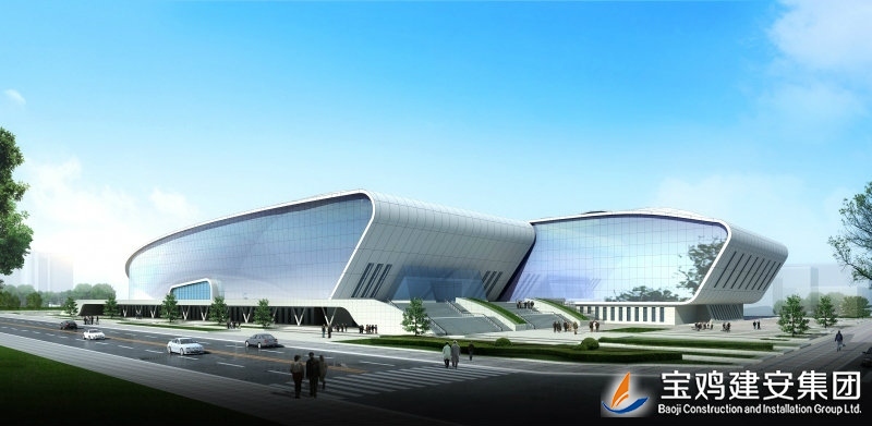 Baoji Swimming and Diving Hall is the key project item of People's Government of Baoji City, and it is the large-scale public facilities integrated with games and sports fitness business facilities. Located within Baoji University of Arts and Sciences of High-tech District, Baoji City, the project is 171.45m long from east to west, and is 123.4m wide from south to north. With one floor of the main body, five on the ground locally, and one underground, the total building height is of 28.85m, and the total construction area is of ??26,947.86 m