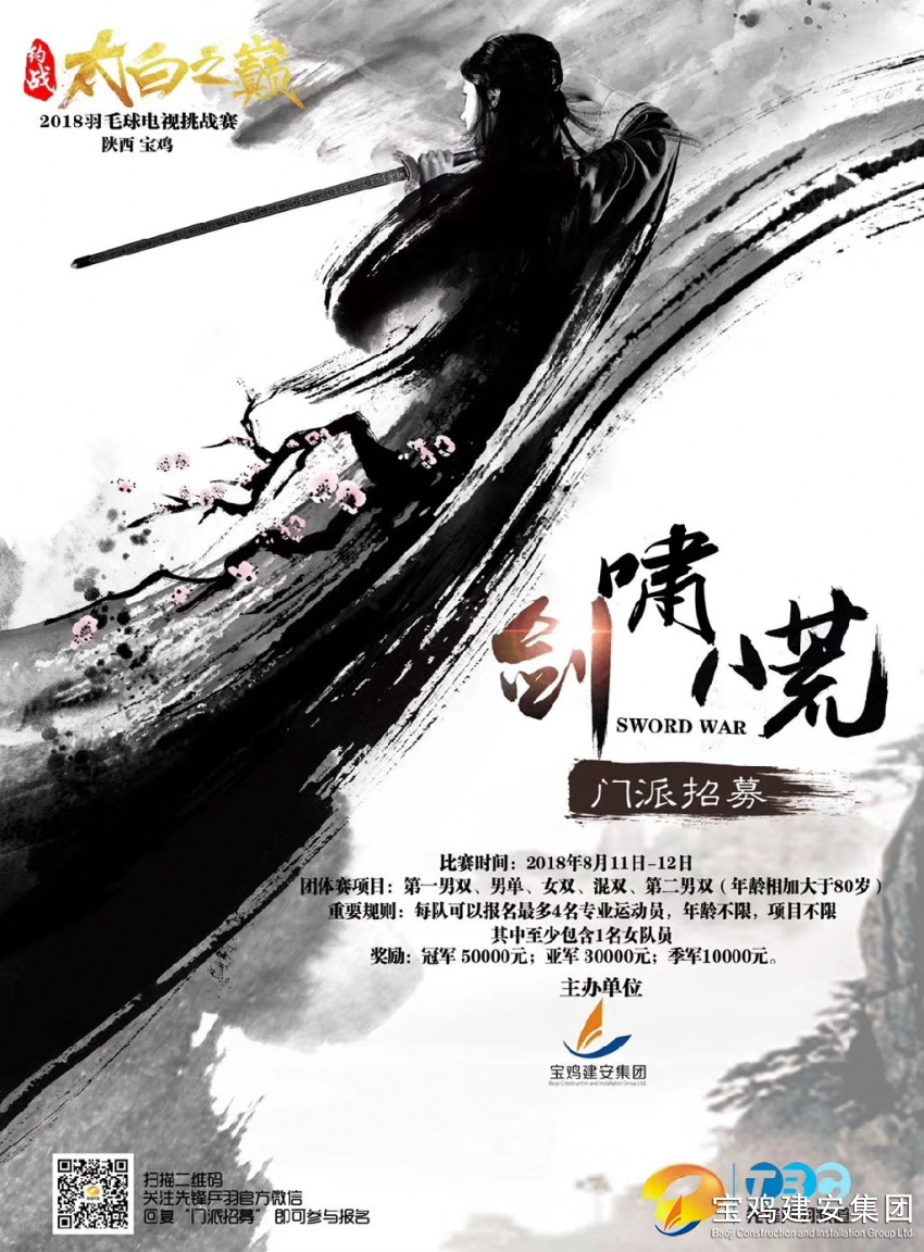 凡有井水處皆聞江湖聲古有華山論劍今有約戰(zhàn)太白2018羽林風(fēng)起云涌各路豪杰逐鹿中原值此日新月異之際先鋒乒羽發(fā)出江湖招募令:誠(chéng)邀江湖各大門派羽林豪杰金秋八月齊聚雍城共襄羽林盛舉! 太白之顛 羽林盟主之位等你來戰(zhàn)!