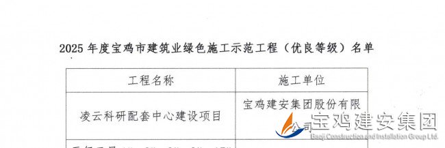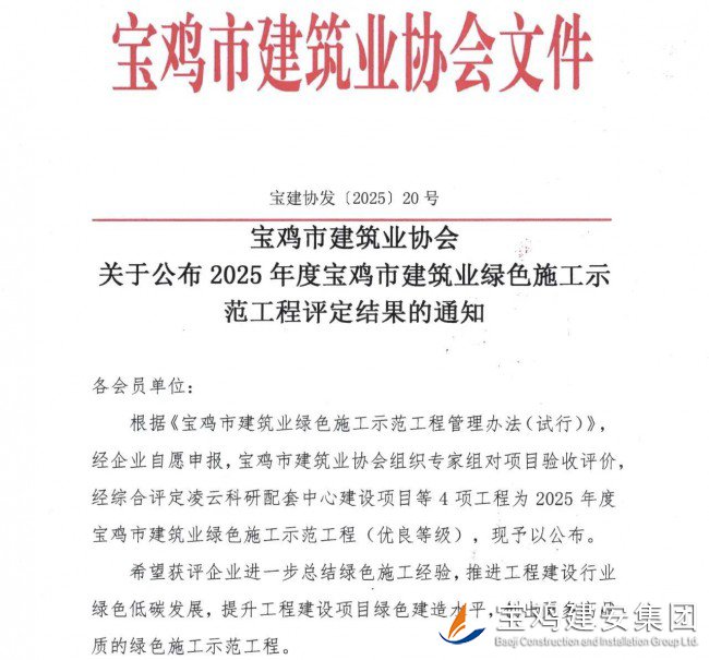 公司承建的凌云科研配套中心建設(shè)項目榮膺“2025 年度寶雞市建筑業(yè)綠色施工示范工程”稱號