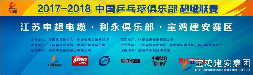 2017-2018中國(guó)乒乓球俱樂部超級(jí)聯(lián)賽--江蘇中超電纜·利永俱樂部·寶雞建安賽區(qū)