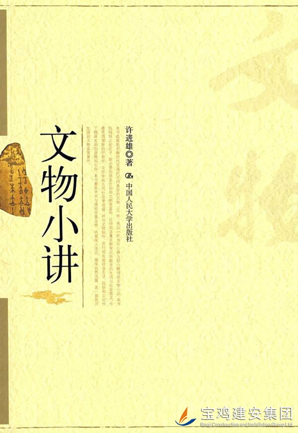 公司開展“書香企業(yè)”讀書月活動(dòng),提供了大量?jī)?yōu)秀的各類書籍供員工閱讀,我有緣拜讀到一本臺(tái)灣著名學(xué)者許進(jìn)雄先生的作品《文物小講》。 這本書以通俗易懂而不失學(xué)術(shù)的小品文方式,介紹了150件中國(guó)文物。文物歷史橫跨新石器時(shí)代至清代,文體精悍短小,詮釋精辟生動(dòng),讓人閱讀時(shí)仿佛置身博物館中游覽,不知不覺(jué)引人入勝。