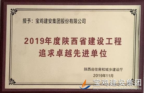 2019年度陜西省建設(shè)工程追求卓越先進單位